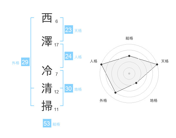 西澤 冷清掃さんの総格は53画の3点!