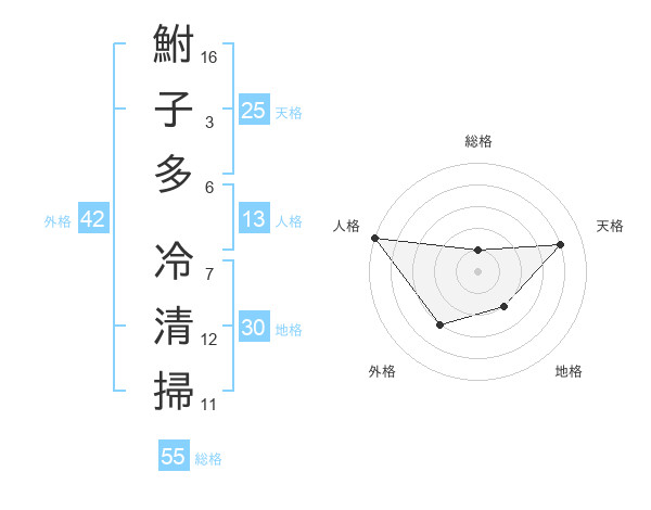 鮒子多 冷清掃さんを姓名の画数から五運を鑑定