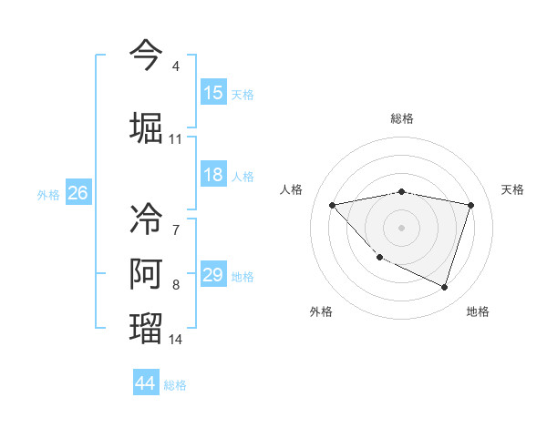 今堀 冷阿瑠さんを姓名の画数から五運を鑑定