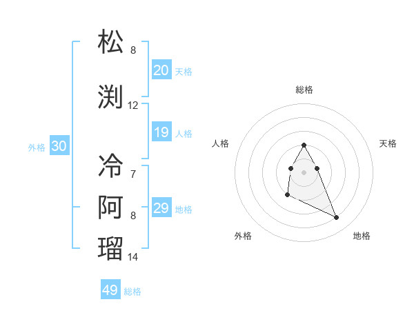 松渕 冷阿瑠さんを姓名の画数から五運を鑑定