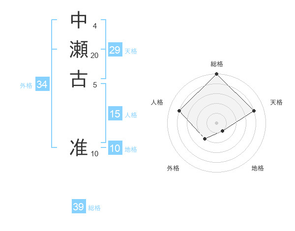中瀬古 准さんの総格は39画の5点!