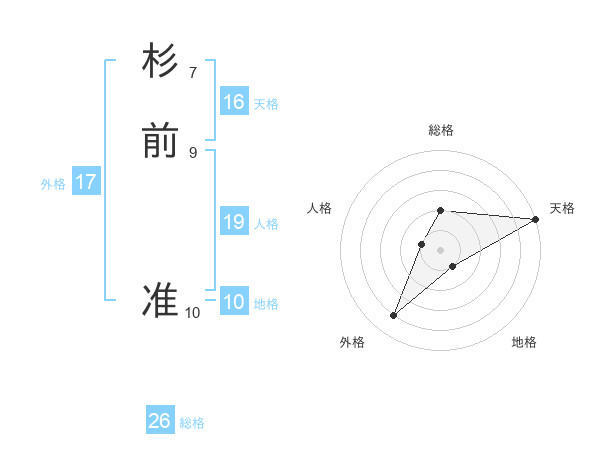 杉前 准さんの天格は16画の5点!