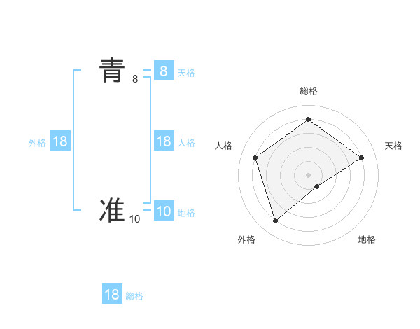 青 准さんの総格は18画の4点!