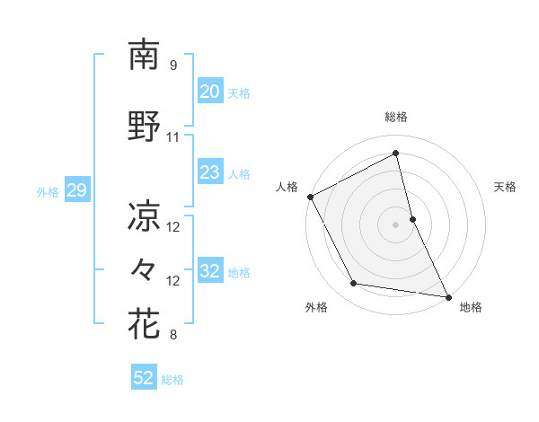 南野 凉々花さんを姓名の画数から五運を鑑定