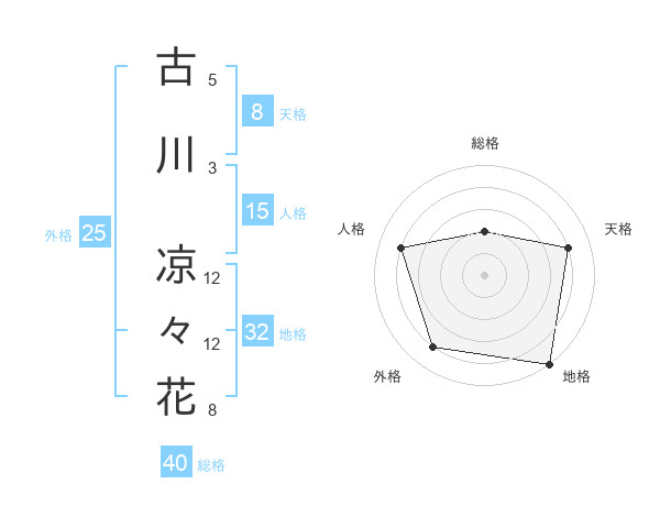古川 凉々花さんを姓名の画数から五運を鑑定