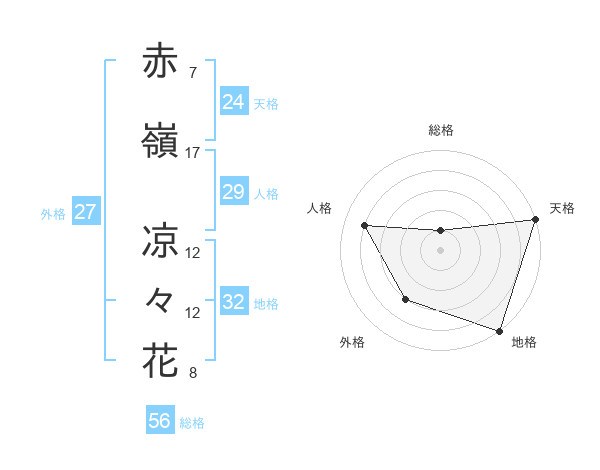 赤嶺 凉々花さんを姓名の画数から五運を鑑定