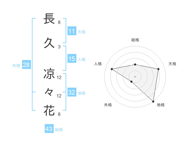 長久 凉々花さんを姓名の画数から五運を鑑定