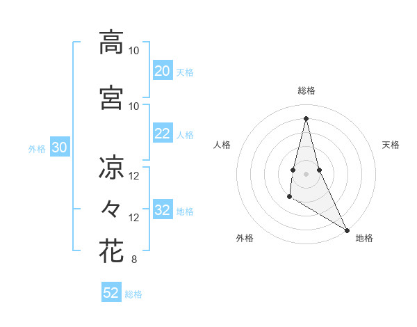 高宮 凉々花さんを姓名の画数から五運を鑑定
