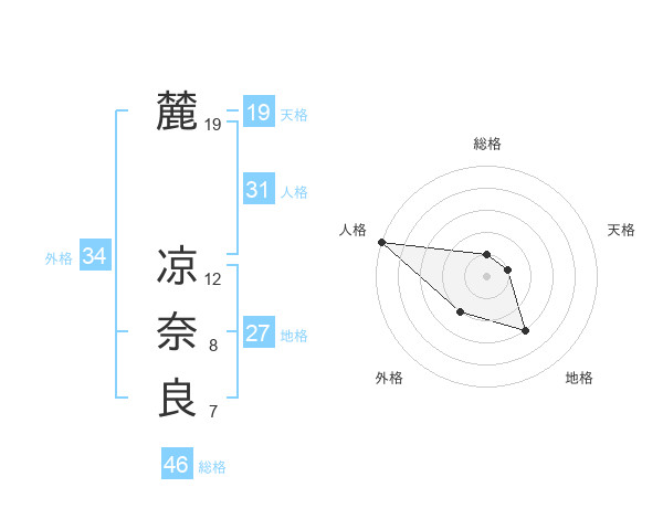 麓 凉奈良さんの総格は46画の1点!