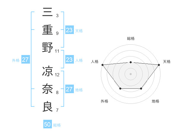 三重野 凉奈良さんの天格は23画の5点!