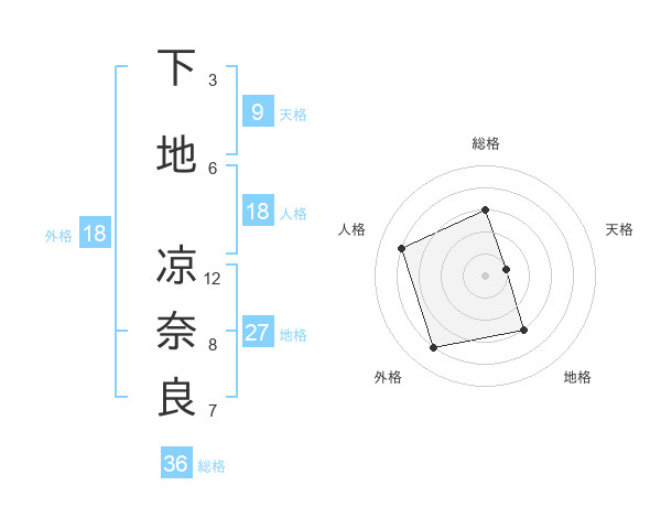 下地 凉奈良さんを姓名の画数から五運を鑑定