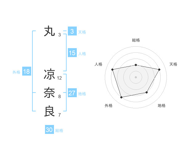 丸 凉奈良さんを姓名の画数から五運を鑑定