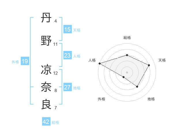 丹野 凉奈良さんを姓名の画数から五運を鑑定