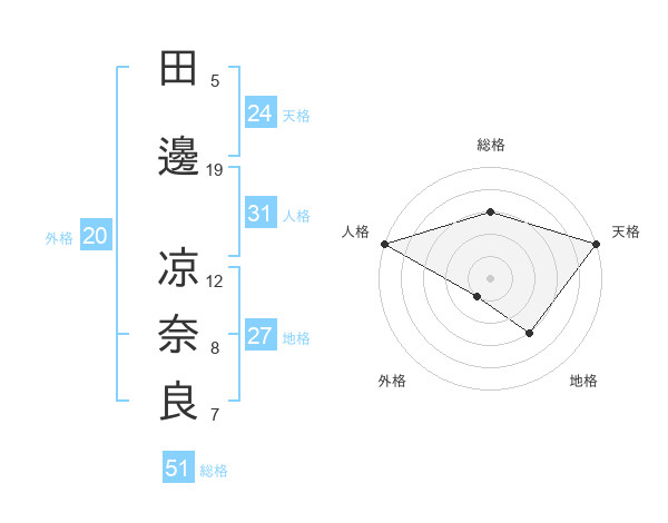 田邊 凉奈良さんを姓名の画数から五運を鑑定