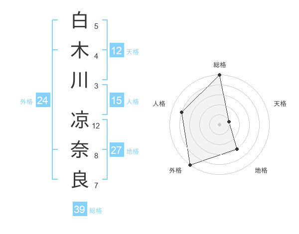 白木川 凉奈良さんを姓名の画数から五運を鑑定