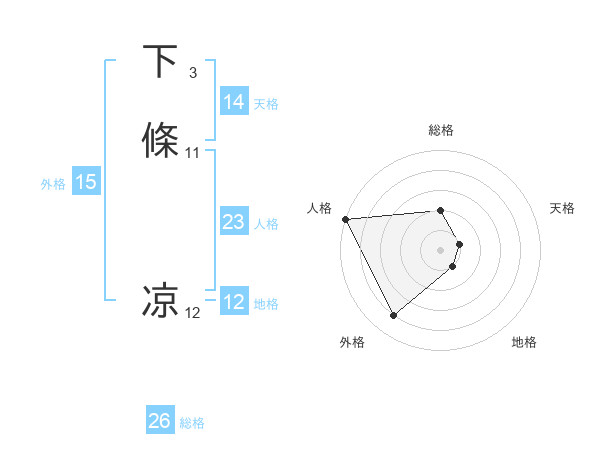 下條 凉さんの総格は26画の2点!