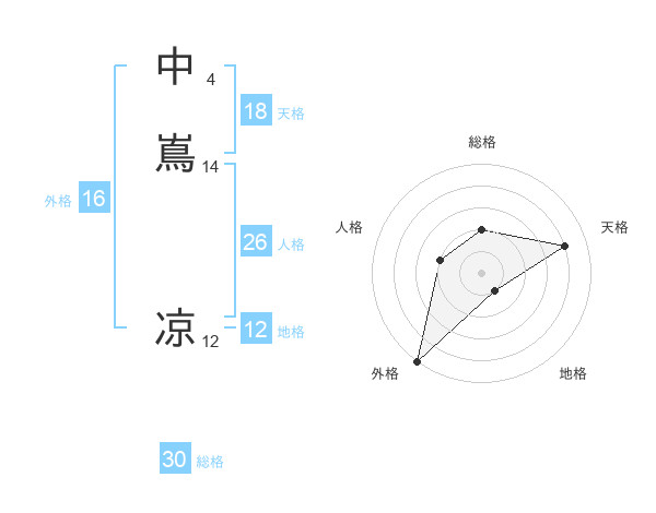 中嶌 凉さんを姓名の画数から五運を鑑定