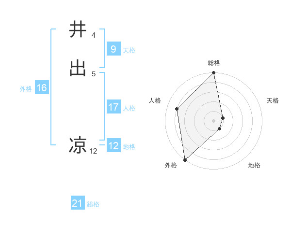 井出 凉さんの総格は21画の5点!