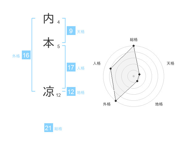 内本 凉さんの総格は21画の5点!