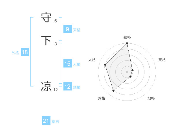 守下 凉さんの総格は21画の5点!