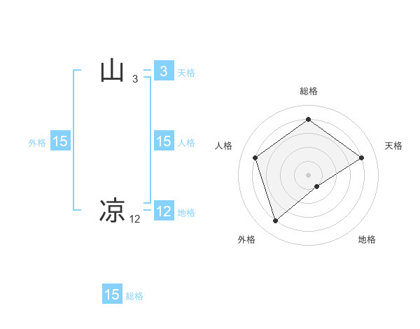 山 凉さんの総格は15画の4点!