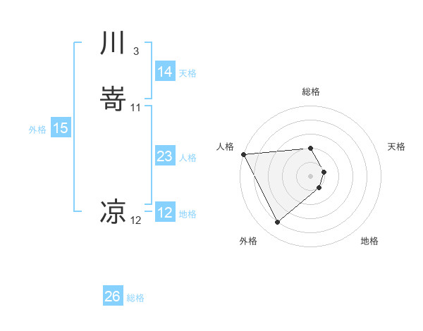 川嵜 凉さんの天格は14画の1点!