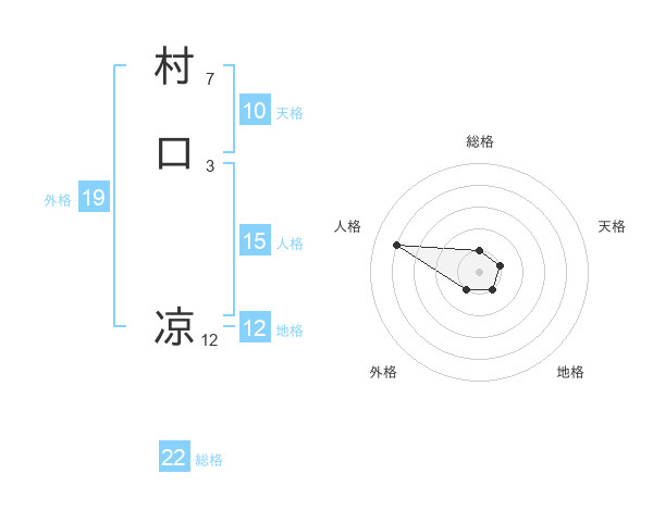 村口 凉さんの総格は22画の1点!