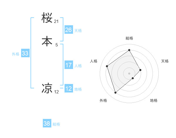 桜本 凉さんの総格は38画の4点!