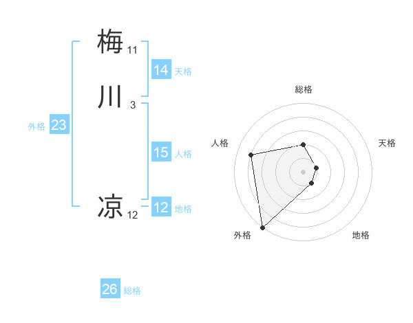 梅川 凉さんの総格は26画の2点!