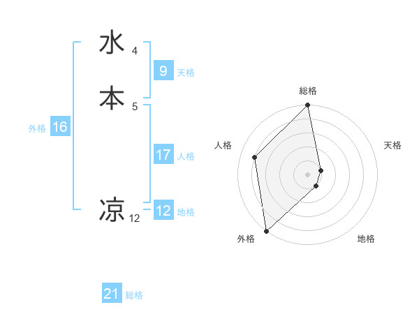 水本 凉さんの総格は21画の5点!