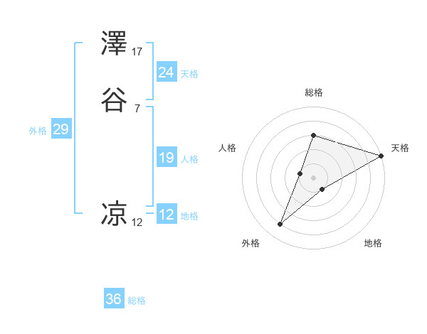 澤谷 凉さんの地格は12画の1点!