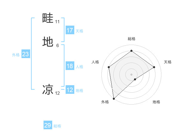 畦地 凉さんの総格は29画の4点!