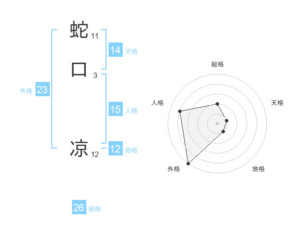 蛇口 凉さんの外格は23画の5点!