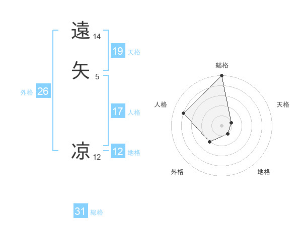 遠矢 凉さんを姓名の画数から五運を鑑定