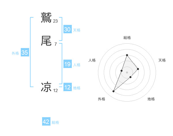 鷲尾 凉さんを姓名の画数から五運を鑑定