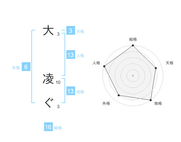 大 凌ぐさんの地格は13画の5点!