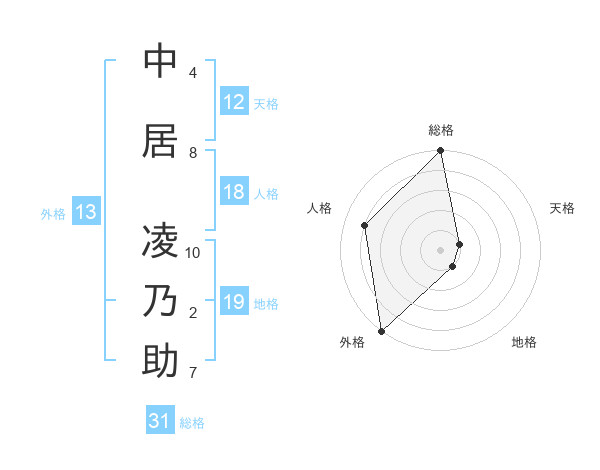 中居 凌乃助さんを姓名の画数から五運を鑑定