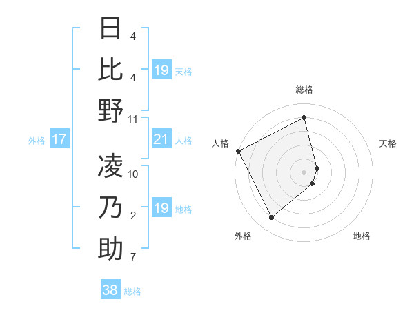 日比野 凌乃助さんを姓名の画数から五運を鑑定