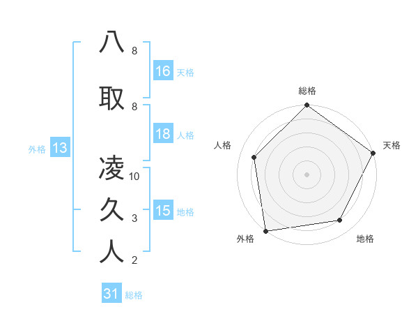 八取 凌久人さんの外格は13画の5点!