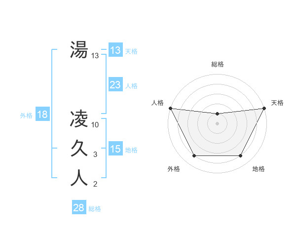 湯 凌久人さんの天格は13画の5点!