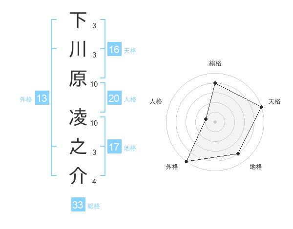 下川原 凌之介さんを姓名の画数から五運を鑑定