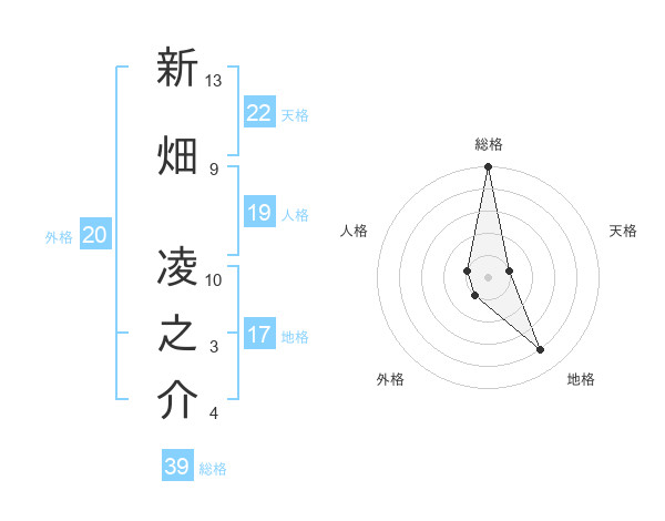 新畑 凌之介さんを姓名の画数から五運を鑑定