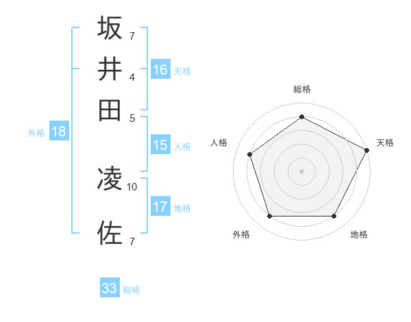 坂井田 凌佐さんの天格は16画の5点!