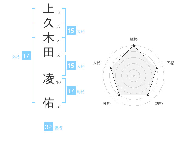 上久木田 凌佑さんを姓名の画数から五運を鑑定