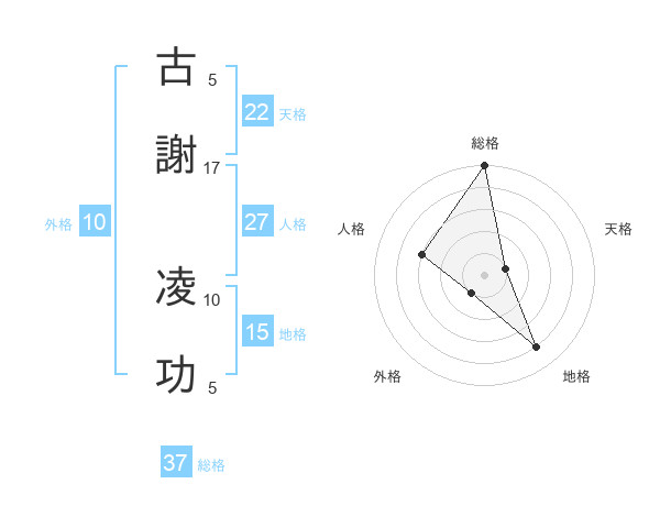 古謝 凌功さんを姓名の画数から五運を鑑定