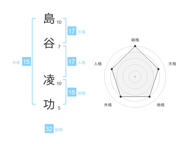 島谷 凌功さんを姓名の画数から五運を鑑定