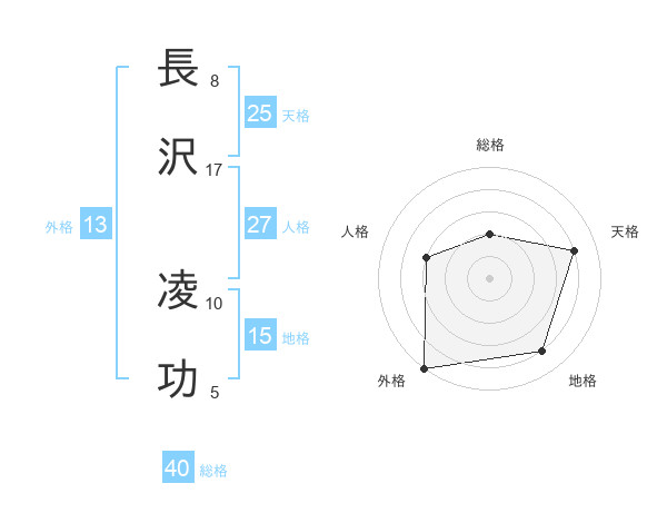 長沢 凌功さんの天格は25画の4点!