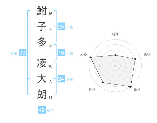 鮒子多 凌大朗さんを姓名の画数から五運を鑑定