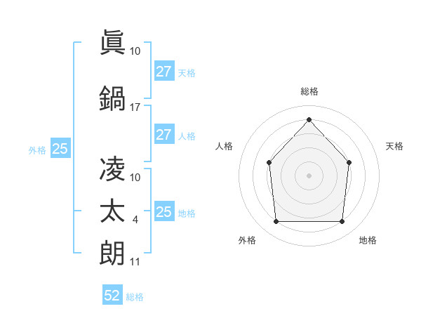 眞鍋 凌太朗さんの総格は52画の4点!