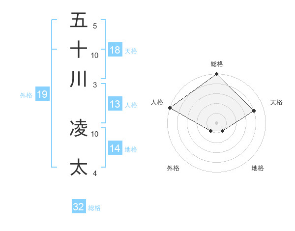 五十川 凌太さんの総格は32画の5点!